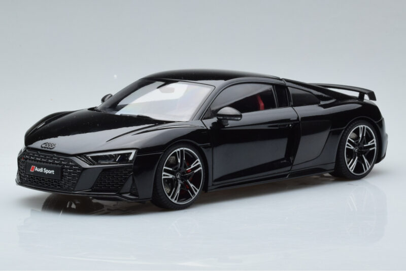 A 1:18 scale model measures approximately 25-28 cm (approximately 10-11 inches). The Audi R8 Performance ブラック Kengfai 1:18 is perfect for display in a glass cabinet or on a shelf.