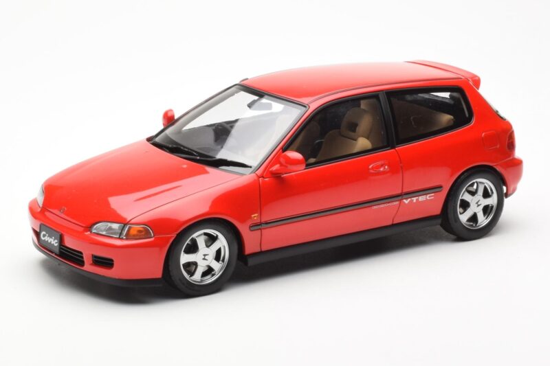 The Honda Civic EG6 VTEC レッド LCD 1:18 is crafted from メタル. Die-cast zinc alloy body with detailed plastic parts, rubber tires, and high-quality paint finish. Die-cast models are known for their weight, durability, and realistic feel.