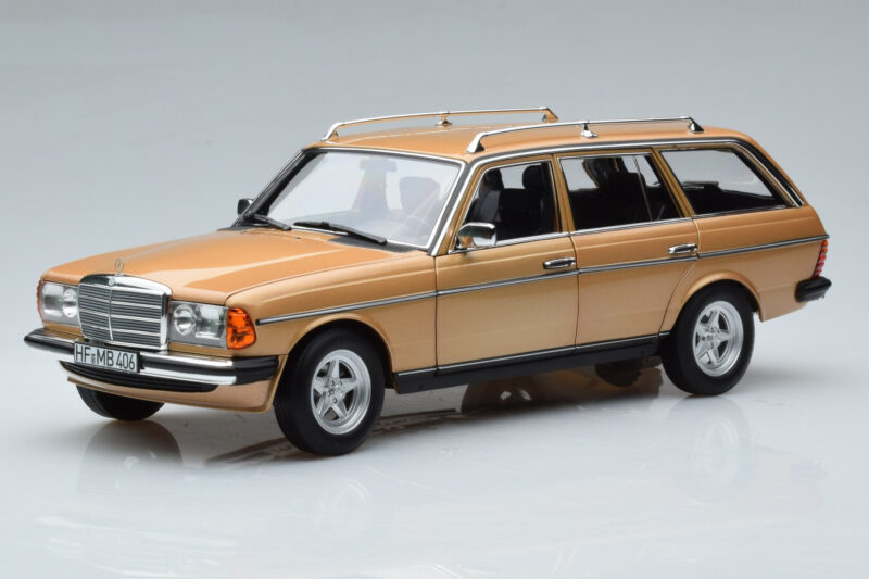 The Mercedes 200T S123 AMG Package ベージュ Norev 1:18 is crafted from メタル. Die-cast zinc alloy body with detailed plastic parts, rubber tires, and high-quality paint finish. Die-cast models are known for their weight, durability, and realistic feel.