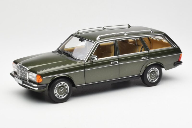 The Mercedes 230T W123 T-Model グリーン メタリック Norev 1:18 is crafted from メタル. Die-cast zinc alloy body with detailed plastic parts, rubber tires, and high-quality paint finish. Die-cast models are known for their weight, durability, and realistic feel.