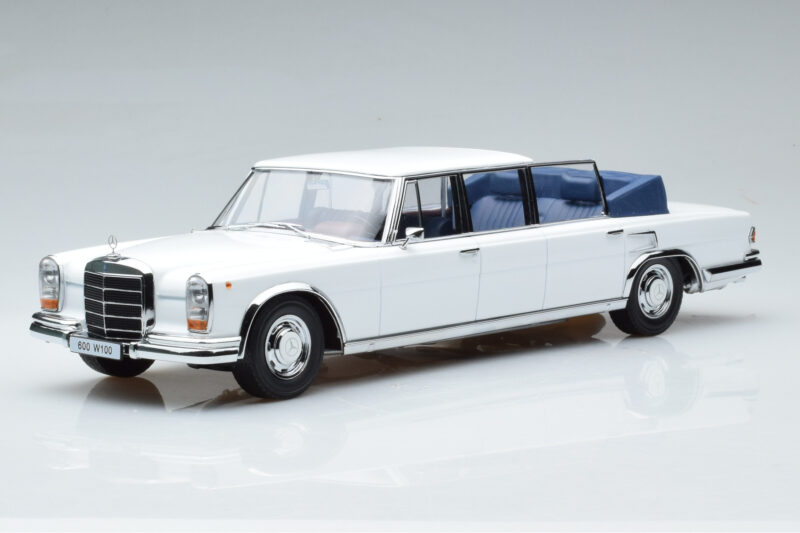 The Mercedes 600 Pullman W100 Landaulet ホワイト KK-Scale 1:18 is crafted from メタル. Die-cast zinc alloy body with detailed plastic parts, rubber tires, and high-quality paint finish. Die-cast models are known for their weight, durability, and realistic feel.