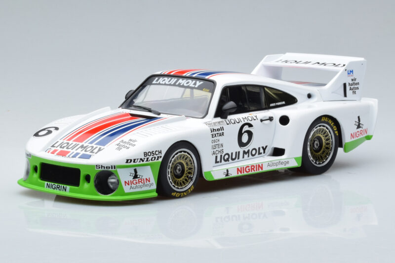 The Porsche 935J #6 Liqui Moly Spa-Francorchamps DRM 1980 MCG 1:18 is crafted from メタル. Die-cast zinc alloy body with detailed plastic parts, rubber tires, and high-quality paint finish. Die-cast models are known for their weight, durability, and realistic feel.
